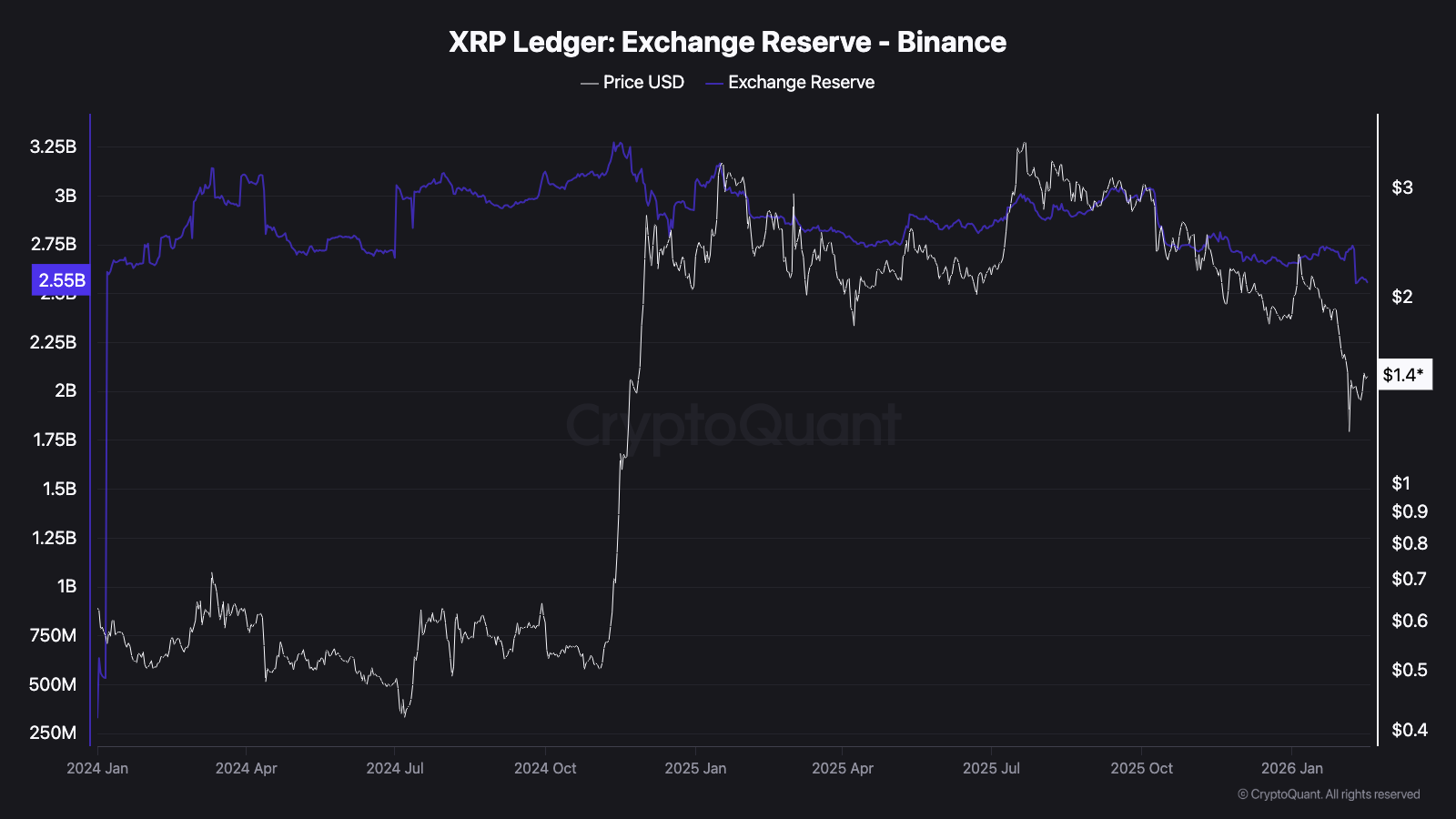 The data from CryptoQuant also indicated that the XRP reserves on Binance were down by 192 million XRP to 2 billion between Feb 7 and 9. The 7% fall was the lowest since January 2024, and the reserves have remained stable since then.