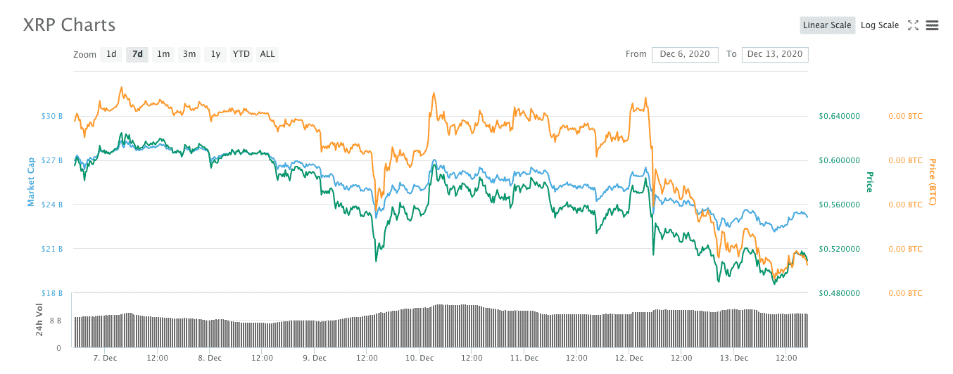 Ripple XRP remains under selling pressure as it has corrected nearly 20% over the last week. XRP continues it downward momentum over the last week and even moved below the crucial support of $0.50. Unlike Bitcoin (BTC) and Ethereum (ETH), the price of XRP has refused to see any reversal.