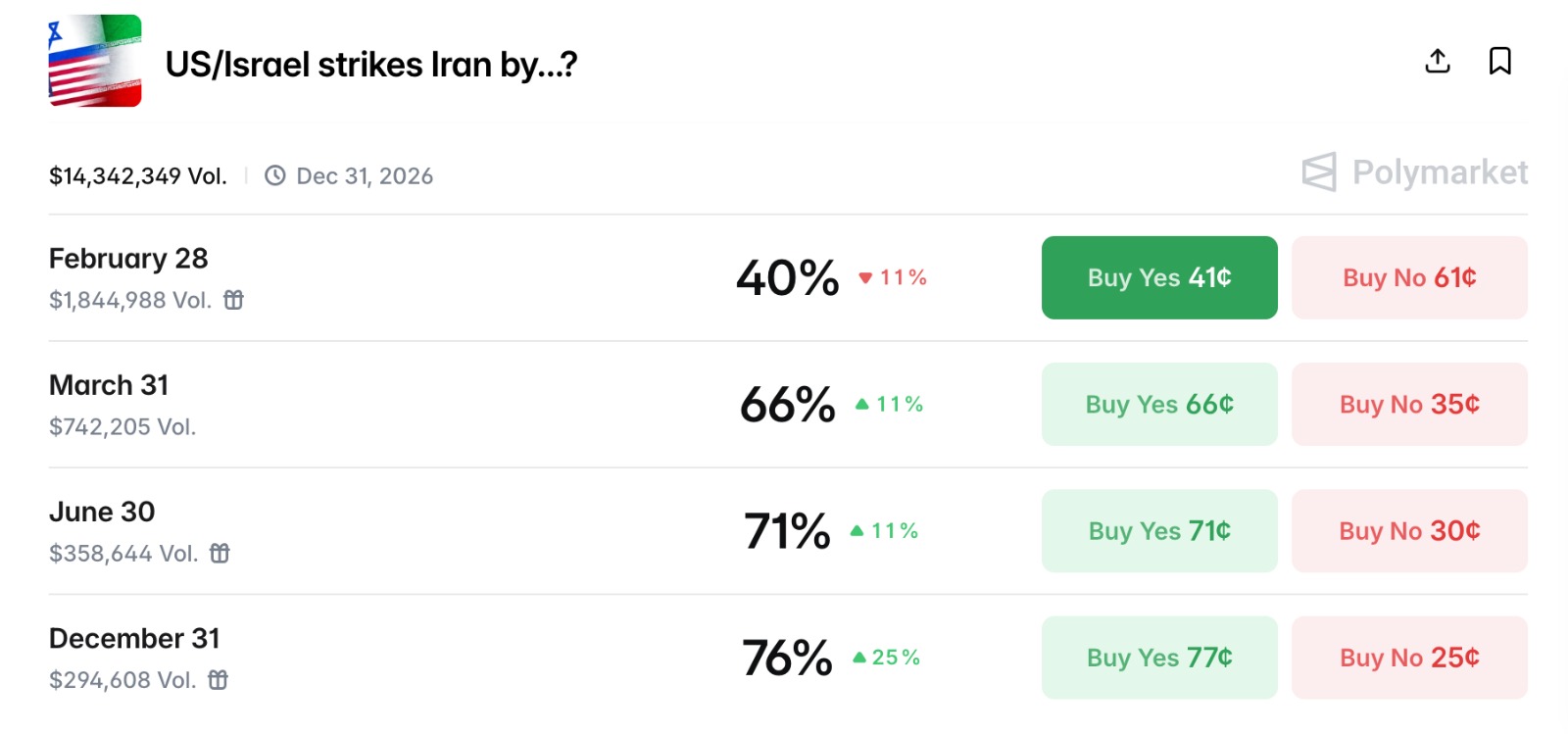 Polymarket Odds on U.S.-Iran War Rise
