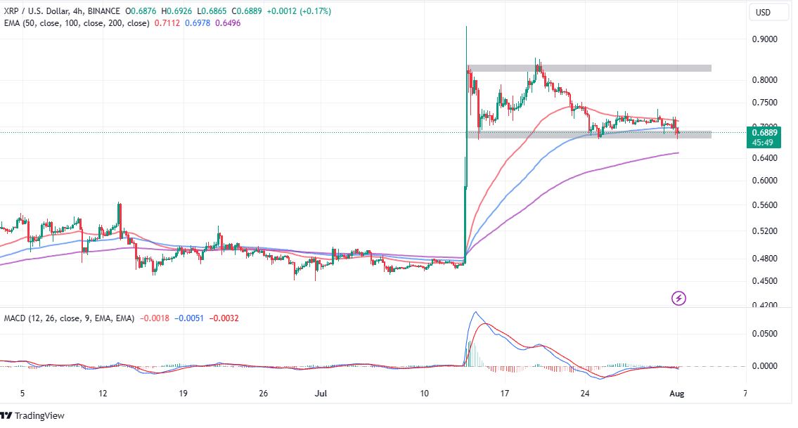 A sustained break above $0.7 would mean that the range support is sturdy enough to arrest potential declines, possibly averting an impending sell-off, with the Ripple ruling seemingly in trouble.