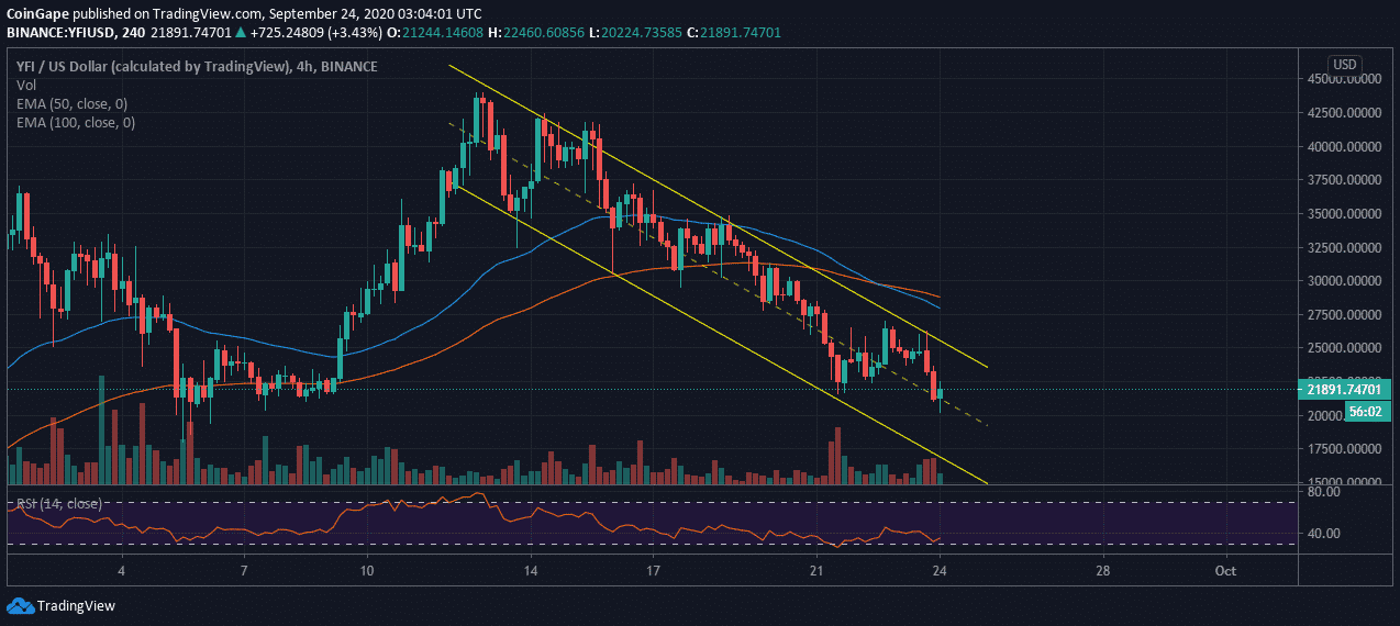 - Yearn.finance refreshes support at $20,000 but rebounds towards $22,000.