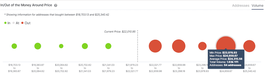 According to IntoTheBlock’s IOMAP, the path ahead of YFI is not a walk in the park. Particularly, the toughest resistance zone lies between $23,978 and $24,659. The model highlights that 64 addresses previously purchased 1,930 YFI in the range.